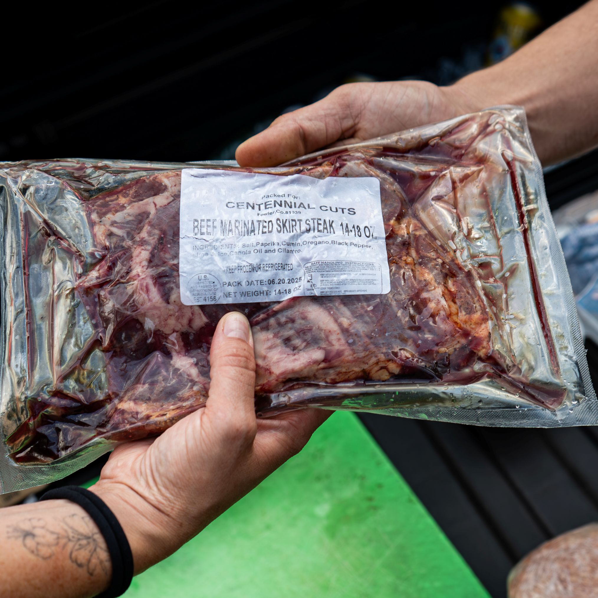 - (1) package of Marinated Skirt Steak (14-18oz)